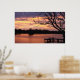 O sol colore o céu ao pôr do sol ao longo do rio Hillsborough, no Parque Riverhills, em Temple Terrace, na Flórida. Foto mostra doca de barco e árvores estéreis durante o inverno. Escolha entre várias opções de impressão e enquadramento para atender às suas necessidades!