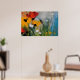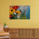 Esta evocativa obra de arte abstrata captura a sensação de um prado à beira de um rio através de uma textura rica, cor em camadas e pinceladas expressivas. Explosões quentes de flores vermelhas e amarelo-dourado emergem de verdes exuberantes, enquanto tons azuis suaves e cinzas enevoados sugerem água, céu e reflexos suaves nas proximidades. A aplicação de tinta espessa e pinceladas visíveis de espátula dão à peça uma qualidade tátil, quase imersiva, como se a cena estivesse viva com brisa e movimento.