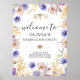 Comemore o trabalho de duro e a dedicação de uma enfermeira recém-registrada com esse elegante sinal de boas-vindas da graduação. Apresentando delicadas flores silvestres em tons púrpuros, azuis e dourados, juntamente com um estetoscópio e o símbolo RN caduceus, este sinal adiciona um toque pessoal e sofisticado a qualquer festa de formatura de enfermaria. Perfeito para acolher convidados e criar uma bela atmosfera de festa!