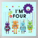 Crianças que amam robôs adorarão nossas t-shirts de 4 de aniversário do robô, cartas, sacolas de tote, botões de aniversário e outros equipamentos de aniversário do 4° aniversário do design robô!