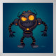 Ilustração de desenho vetorial de um robô zangado se preparando para a batalha. Este robô malvado e malvado é uma cinza escura com olhos e realces laranja.