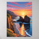 Descubra a beleza única das Rochas Panqueca de Punakaiki com esta obra de arte cativante. A cena destaca as fascinantes formações de calcário em camadas que se assemelham a pilhas de panquecas, esculpidas ao longo de milhões de anos pelas ondas implacáveis do oceano.