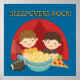 Crianças que adoram dormentes no quintal adorarão esta design bonitinha com dois meninos com pizza e uma tigela enorme de pipoca sentada fora de uma tenda vermelha! Dormentes Camisas de Rock, bolsas, canecas, mousépias, correntes-chave, cartões, adesivos, e muito mais!