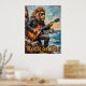 Esta vibrante trabalho de arte apresenta um leão legal, óculos de sol esportivos e uma jaqueta de couro, tocando intensamente uma guitarra elétrica sobre uma rocha, olhando para um oceano dinâmico e cheio de ondas. Um pôr do sol feroz ilumina o céu e a costa distante. As pinceladas grossas e texturizadas da pintura dão uma sensação crua e enérgica à cena, com "Rock or Die" ousado exibido abaixo, incorporando um espírito rebelde.