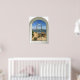 Vista do mar, cena de praia de janela curva falsa, para um escritório sem janelas. Poster de ilusão óptica de paisagem muito realista que pareceria excelente em um escritório ou uma parede de estudo.