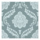 A vintage style decorative damask surface pattern influenced by rococo classical design in duck egg blue color detail on a teal background.