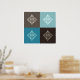Poster Rolar Cor damasco Quadrados Teals Procura Branco