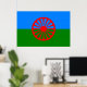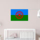 Esta design apresenta a bandeira romani, que é a bandeira internacional das pessoas romanichéis. A bandeira é constituída por um fundo azul e verde, representando os céus e a terra, respectivamente; contém também uma chacra vermelha de 16 raios, ou uma cartela, no centro, que representa a tradição itinerante das pessoas romanichéis e é também uma homenagem à bandeira da Índia. A bandeira foi aprovada pelos representantes de várias comunidades romanichéis no primeiro Congresso Mundial Romani (WRC), realizado em Orpington em 1971.