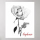 Poster Rosa Branca Simples e Elegante no Lápis de Grafite