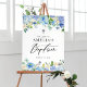 Bem-vindos convidados para o seu evento com este sinal de boas-vindas personalizável do batismo. Apresenta terras florais de cor aquosa de rosas azuis, roxas e brancas, anêmonas e híbridos. Personalize este sinal de batismo floral adicionando os detalhes do evento. Este sinal de boas-vindas ao hálito de hydrangea baptism é perfeito para eventos de primavera e inverno.