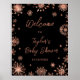 Poster Rosa Dourado Snowflakes Chá de fraldas Bem-vindo
