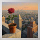 Trabalho de arte de um rosa na borda de um arranha-céu olhando a cidade. Contra o pano de fundo da cidade de linha do horizonte banhada nas matizes quentes do amanhecer ou do anoitecer, uma rosa vermelha solteiro permanece resistente no seu pote de terracota. Permitido na borda de um terraço, esta pintura captura um momento de beleza silenciosa e perseverança em meio à paisagem urbana. As delicadas pétalas e a cor vibrante do rosa oferecem um contraste pungente às estruturas de concreto abaixo, simbolizando a esperança, a vida e a beleza inesperada encontradas nos lugares mais improváveis. Esta peça convida a contemplação sobre a resiliência da natureza e os momentos silenciosos de beleza dentro da movimentada cidade. Este trabalho de arte pode ser personalizado, impresso e ou baixado.