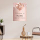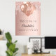 Uma poster de boas-vindas para uma festa de aniversário de Quinceañera (ou qualquer idade) feminina e glamourosa. Um fundo metálico de aspecto rosa dourado, decorado com pingos de falso brilho, aparência de pingar, balões. Personalize e adicione um nome e uma idade. Traseira: sem design