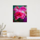 Poster com tema Floral apresentando uma foto de uma grande rosa rosa rosa com flocos de neve sobre fundo verde-escuro. Um lugar colorido para o seu espaço de trabalho ou de vida. Funcionará especialmente bem com o estilo de decoração do país, do estilo rústico e do boho. Por favor, personalize-o, adicionando seu próprio texto. Para mais modificações (estilo de fonte, cor de fonte, posição de texto), clique em "Editar design".