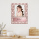 A Elegante poster de festa de aniversário Quinceañera 15 com um design cor-de-rosa/rosa com ouro enfeitado com pérolas brancas. Personalize adicionando uma foto e o nome do celebrante ao quadro de pérolas clássico.