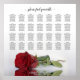 Esta bela tabela de 28 mesas de assentos de casamento apresenta uma imagem de uma rosa vermelha solteiro ao lado, refletindo em água com ondas e ondulações. O título diz "por favor, encontre sua mesa" na elegante caligrafia do roteiro de lacy. Há espaço para os nomes dos casais e data do casamento. Este gráfico tem atribuições de mesa para 280 convidados 10 pessoas por mesa.