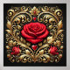 Poster Rosa vermelha luxuosa e Trabalho de arte Dourada