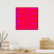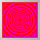 Ilusão Óptica: Nessa imagem, ondas de círculos concêntricos vermelhos e cor-de-rosa criam a percepção de movimentos pulsantes e vibrações.
