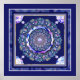 Desenho de uma janela de vidro manchado de uma velha igreja europeia: uma janela de rosa, com toques de uma grande variedade de cores, incluindo tons de azul, sobre um fundo azul marinho. Inlay de rochas azuis. Este motivo também está disponível em vermelho cardeal em minhas coleções de "rosa vermelho cardeal". (sem IA)