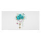 Chave de ouro antiga com rosas de turquesa de tendência, decoradas com folhas de ouro branco e miçangas cor-de-rosa e azuis. Cor agradável. Rosas de turquesa. Ouro branco. Tifania azul.