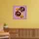 Rosquinhas de chocolate e muffins com fundo roxo.