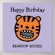 Rosto de tigre marrom fofo roxo. Adicione seu nome neste design de fundo roxo fofo.