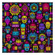 Um trabalho de arte de rabisco ousado e colorido com uma mistura de máscaras tribais, faces abstrato e ícones futuristas em um estilo impressionante de pop. A vibrante paleta de cor-de-rosa, amarela, azul e roxa cria uma vibração surpreendente da arte de rua que é perfeita para os interiores modernos, declaraçãoroupa e arte urbana de muros. Esta peça única combina o surrealismo, o espírito tribal e a ciberfantasia, fazer ideal para amantes da arte, fãs da cultura de rua e qualquer um que ame padrões ousados e expressivos.