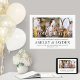 Dê as boas-vindas aos convidados em um chá de panela de casais elegante com um cartaz personalizado de colagem de 3 fotos 18"x24". As imagens e todo o texto são simples de personalizar. (DICA DE COLOCAÇÃO DE IMAGEM: Uma maneira fácil de centralizar uma foto exatamente como você deseja é cortá-la antes de fazer o upload para o site da Zazzle.) O design moderno minimalista preto e branco apresenta três imagens de sua escolha, caligrafia estilosa de estilo manuscrito e tipografia vintage elegante. Este sinal de boas-vindas para o chá de panela da noiva é uma maneira elegante de compartilhar fotos do noivado como parte das decorações de celebração do seu dia especial. Parabéns à noiva e ao noivo!