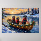 Embrace the loyal, confident spirit of the holiday season with this impressive Rottweiler Christmas design! This magical scene features three powerful, devoted Rottweilers sitting calmly in a cozy wooden boat, gently floating on a serene snowy lake at sunset. The boat is beautifully adorned with glowing Christmas string lights and fragrant pine garlands, while the dogs wear festive scarves. They are surrounded by colorful wrapped presents and cheerful holly branches. Soft snowflakes gently fall, and the shimmering reflection of the lights on the water creates a truly magical winter holiday atmosphere. This design is a perfect Christmas gift for any Rottweiler owner, dog lover, or admirer of festive and magnificent working dog art, capturing the serene joy of the season.