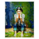 Uma jovem se senta no chão com a cabeça em suas mãos, cercada por cores vibrantes e abstrato de verde e azul. Ela parece contemplativa, criando um clima de introspecção e solidão. Digital Art Photoshop CS5
