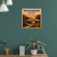 This premium Route 66 poster features the historic Rainbow Bridge in Baxter Springs, Kansas. The artwork captures the elegant white concrete arches reflected in the calm river waters at sunset, surrounded by lush trees and vibrant sunflowers. Rendered in a nostalgic, textured style that evokes the golden era of the American road trip, this high-quality poster is a perfect addition for travel enthusiasts and collectors of vintage Americana. Designed with a weathered finish to honor the 100th anniversary of the Mother Road, this professional-grade poster is ideal for a home office, living room, or gallery wall. Celebrate the 1926-2026 centennial milestone with this sophisticated tribute to the only remaining Marsh Arch bridge on the legendary 2,448-mile journey.