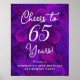 Elegante Purple Cheers to 65 Year 65th Birthday Retirement Poster Mostra esta Elegante Purple Message Poster na entrada da festa de aniversário especial marco. O texto é totalmente personalizável para que você possa personalizar a mensagem perfeita para seus convidados. Compre nossa loja para mais planejamento de festas e materiais decorativos!