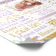 Um toque perfeito para a festa de um ano da sua pequena! Este lindo Cartaz de Estatísticas de Nascimento e Marcas do 1º Aniversário com Floral Roxo é perfeito para emoldurar e colocar em uma mesa de sobremesas/bolos e usar como decoração do quarto da criança posteriormente. Ótimo como um adereço para fotos muito especiais e memoráveis do aniversário! Também é um presente maravilhoso e único!