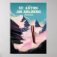 Rua. Anton am Arlberg esquia à Áustria poster de viagens num belo estilo de vintage.