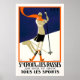 poster vintage excelente de uma mulher de deco de arte esquiando em Ruas. Suiça Croix.