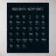 Um design simples e elegante que representa o alfabeto russo sobre um fundo escuro. Que maneira melhor e mais inteligente de aprender e rever o roteiro cirílico? Essa design é ideal para estudantes que querem se destacar na língua russa, pois mostra a aparência e o som de cada carta. Aprender russo nunca foi tão fácil assim!