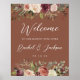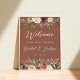 Bem-vindos convidados para o seu casamento com nosso poster Rustic Bloom, com culturas botânicas de cor aquática e flores em cores ricas do outono, com "bem-vindos a nossa felicidade para sempre", seus nomes, e data de casamento em uma mistura de serifas e tipos de caligrafia tradicionais.