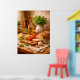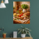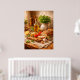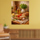 A rustic still life featuring fresh bread, olive oil, herbs, and warm textures. Inspired by Mediterranean cuisine, this artwork adds natural warmth and authenticity to kitchens, dining areas, or restaurant interiors.