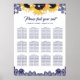 Poster Rustic Navy Blue Lace Sunflower Seating Chart 12