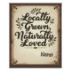 Traga um confortável toque de uma casa de fazenda para a sua cozinha ou lugar de jantar com esta arte de parede ao estilo vintage, com a citação "Locally Grown, Naturally Loved". Totalmente personalizável com o seu nome, este design rústico faz um presente sincero para jardineiros, cozinheiros domésticos e amantes de fazendas. Perfeito para decoração de cozinha, presentes de higiene doméstica ou fãs do mercado que celebram a vida natural.