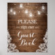 Pôster Rústico Sinal de Lace das Luzes de Madeira Guestbo