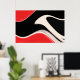 Um design abstrato exclusivo com tons de vermelho, branco e preto.