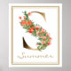 Monograma fino de ouro falso, decorado com um arranjo floral bonito e colorido, com margarida laranja, pedras e flores de enchimento mais pequenas; complementado com botânicos verdes brilhantes. É apenas vibrante e lindo. O nome personalizado no fundo unifica o fazer design único e também um presente perfeito para uma fabulosa garota cujo nome começa com a letra S.