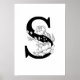 Poster de monograma com letras Elegante S com flores e vidas. Ilustração botânica a preto e branco. Viveiros de poster inicial, quartos, parte da decoração doméstica. Ideia personalizada de presente.