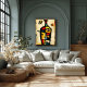 A contemporary abstract interpretation of a wine bottle transformed into a symbolic form. Bold geometry, expressive color blocks, and textured abstraction explore ritual, balance, and inner presence, making this artwork a refined statement piece for modern and artistic interiors.