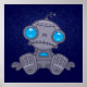 Imagem vetorial de um robozinho fofo, mas triste, com olhos azuis sentados no chão.