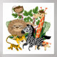 O design de Safari animal apresenta plantas da selva com um leão, zebra, tigre, girafa e macaco! Camisetas de design Safari de animais, fatos-macaco, bíblias, bolsas, canecas, cartões, adesivos, relógios de parede, travesseiros, guardas, capas, capas e muito mais!