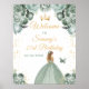 Esta elegante e glamourosa placa de boas-vindas festas de aniversário apresenta uma bela princesa com cabelo louro num vestido verde de sábio. O texto combina o script manuscrito e as fontes sans serif modernas para um aspecto elegante e sofisticado. Os arranjos florais, borboletas e confete de ouro criam a mistura perfeita de rústicos e quicos. Gráficos por www.etsy.com/uk/shop/SunflowerDayLove