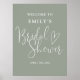 Este sinal de boas-vindas do chá de panela de script elegante verde sábio pode ser personalizado com seu nome e data especial. Projetado por Thisnotme©