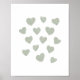Estilo de pincel chalky com pequenos corações em verde-sábio, perfeito para decoração infantil, enforcamentos na parede de quartos de crianças ou arte na sala de jogos de crianças.